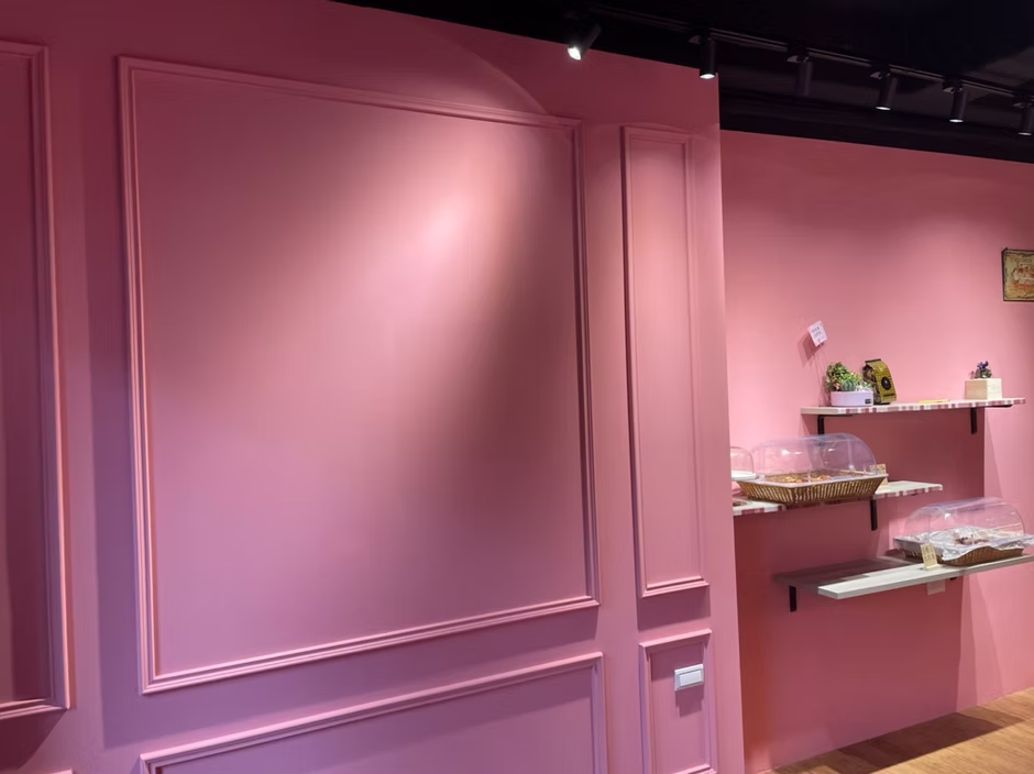 利用粉紅色的牆面讓室內營造出夢幻的甜蜜氛圍