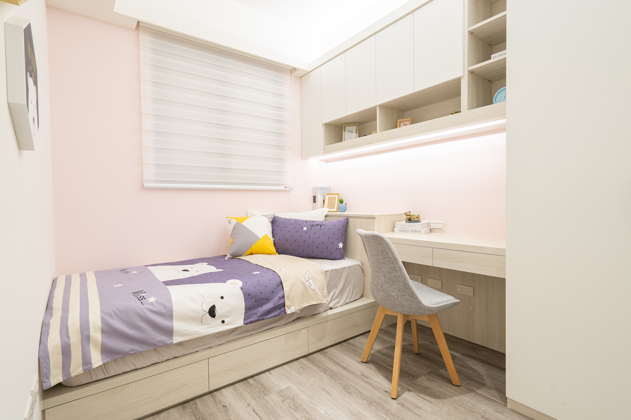 改造了一間 30坪的居家空間,愛女兒的夫妻為了女兒規劃出一間專屬空間滿滿的少女心;全室搭配玻璃與大面積白色的為基底,讓空間更放鬆,成功突破壓抑感覺!