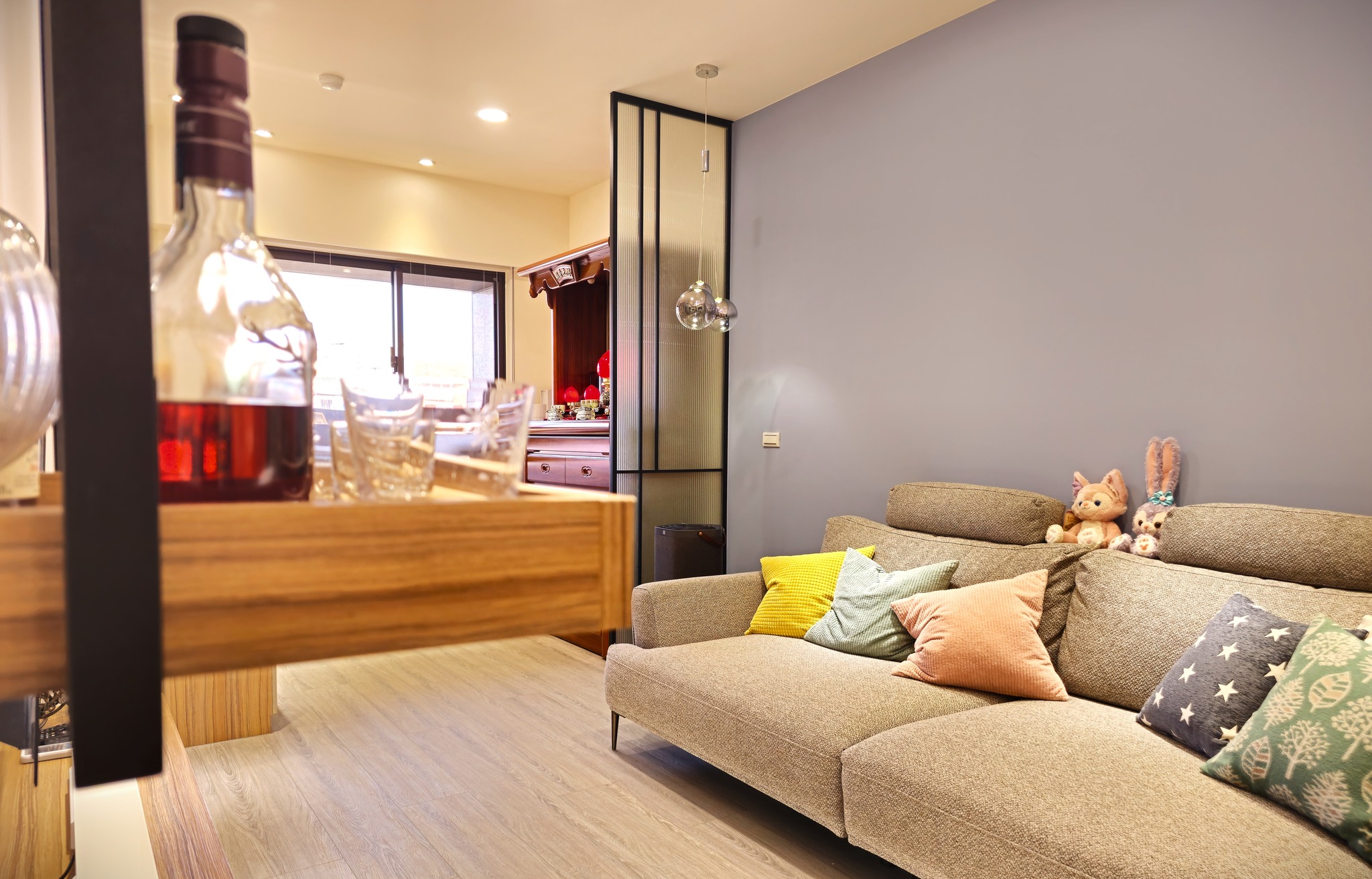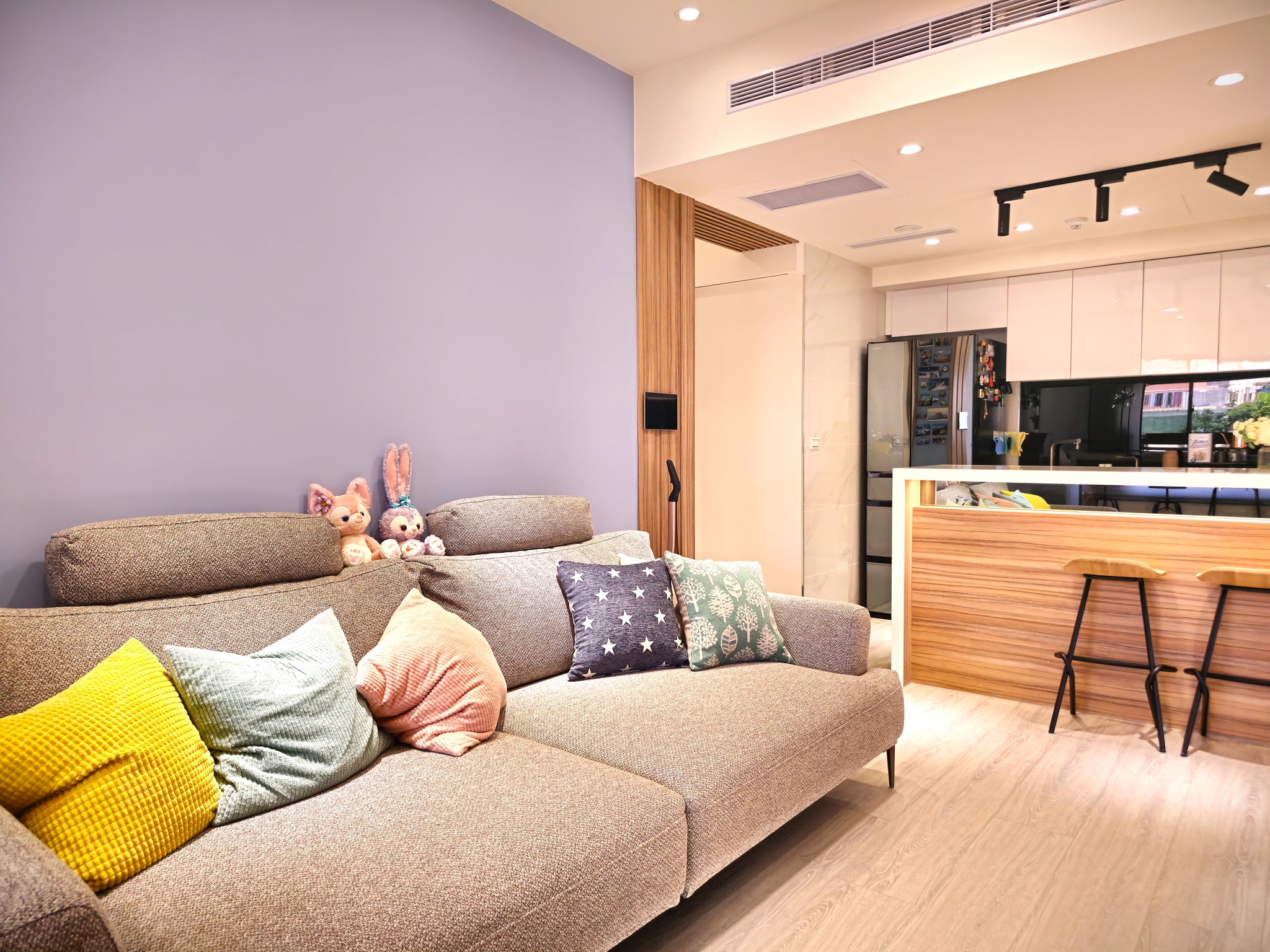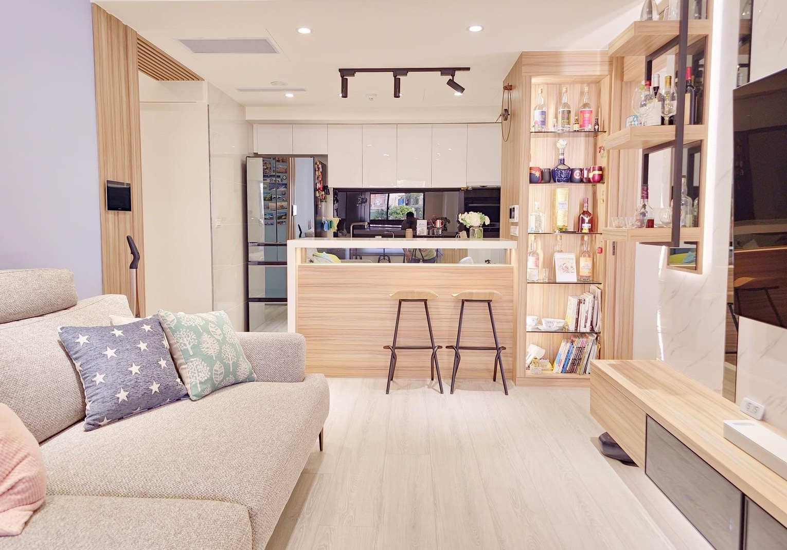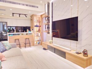 採用溫暖的淺色的木頭櫃,打造溫馨家的感覺。